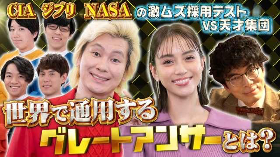 こちらは、世界中の偉大な企業や組織が、グレートな人材を見抜くために実際に行った採用試験や適性テストを出題し、東大発の知識集団、伊沢拓司さん率いるQuizKnockのみなさんに挑戦していただき、“完全なる正解=グレートアンサー”にたどり着けるのか?を検証する“テストドキュメントバラエティ”番組です。